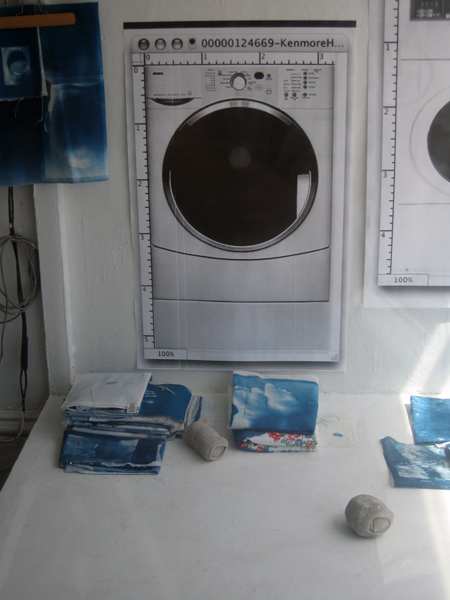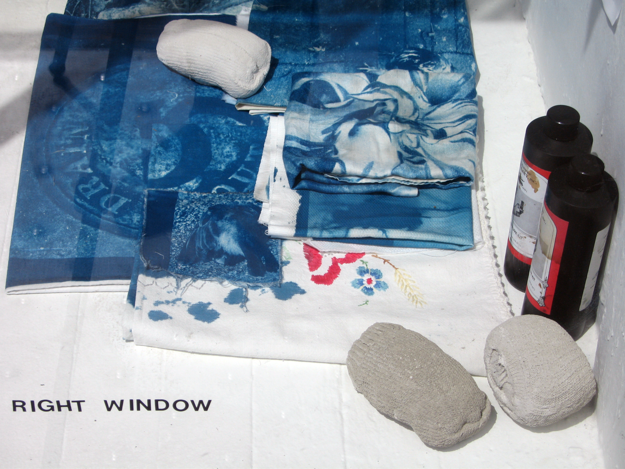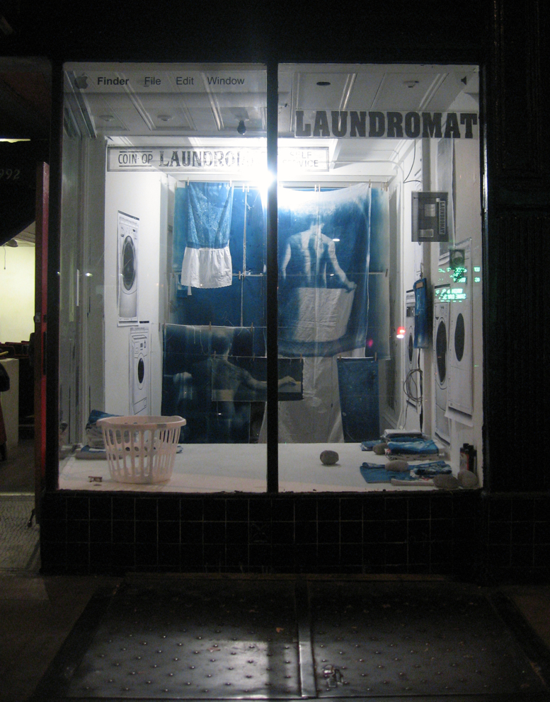 At RIGHT WINDOW Gallery, Neff will apply acetate negatives to the space’s front windows, transforming their panes into interpenetrated representations of an enlarged computer desktop and a small business storefront. Inside the gallery, prints made onto a variety of found fabrics will hang from lines stretched across the space. (Cyanotype prints are, in fact, developed in a water wash). Sorting, washing, folding, and hanging images out to dry, Neff will transform RIGHT WINDOW Gallery into a laundromat of sorts. As with his recent series, Bathers and Other Liquid Pictures (2007), Neff’s new project foregrounds watery studies of nude figures to suggest a return to the primacy of subjectivity in the visual arts.