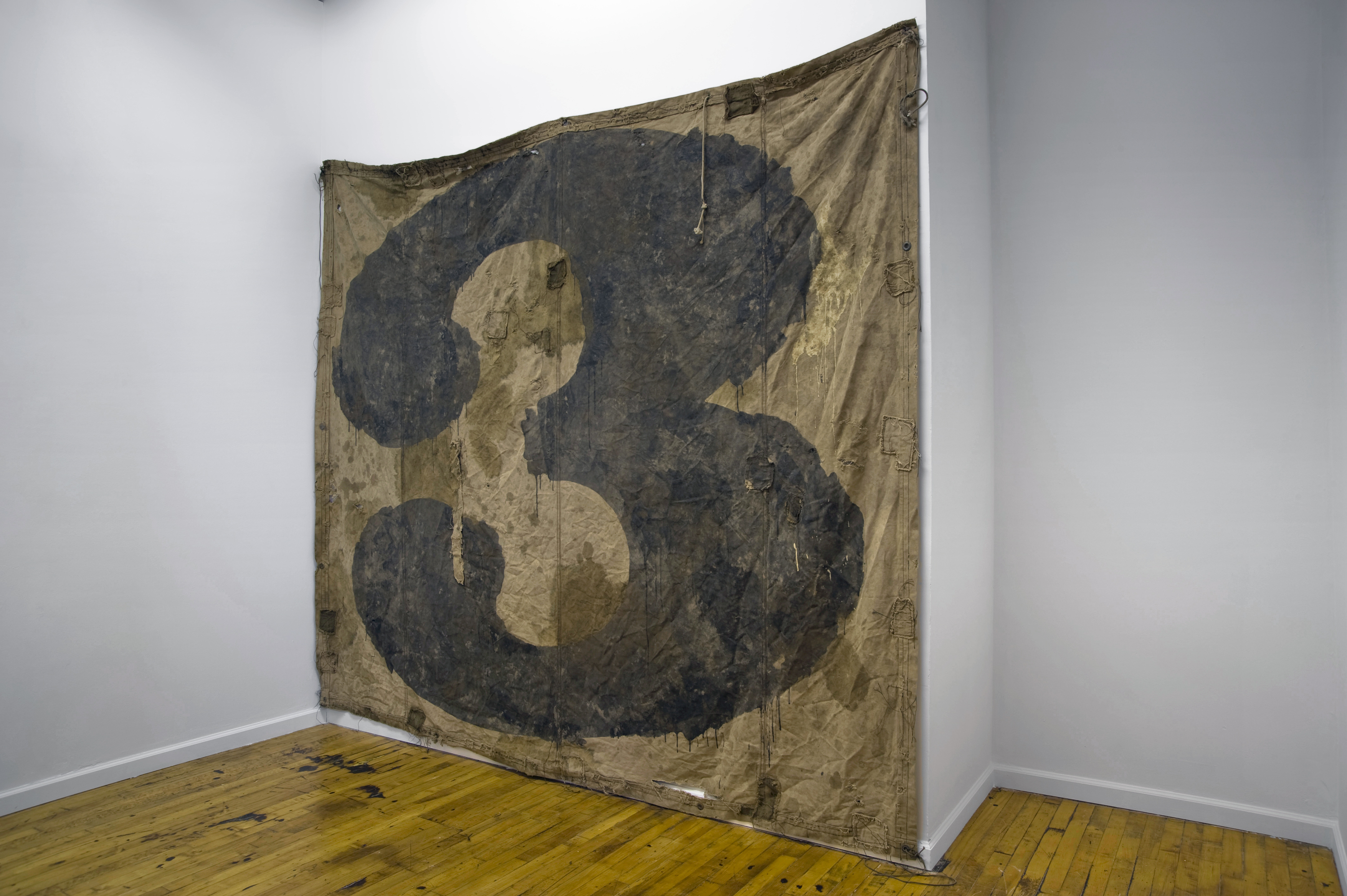 After receiving her education in Chicago and Princeton, the artist Holt Quentel (American, born 1961) rose to sudden prominence in New York's art scene of the late 1980s. Typically, Quentel's works were large-scale unstretched paintings resembling battered awnings, signs and tarpaulins. In creating these works, the artist first handcrafted, and then carefully distressed, her canvases' surfaces. When first exhibited, the paintings' denial of a transparent relationship between process and appearance – a defining characteristic of painting after Minimalism – was often read through then-current theories of "simulation," notably Jean Baudrillard's notion that postmodern culture values impressions over actualities. Likewise, contemporary critics related the artist's frequent allusions to the history of abstract painting to the appropriationist tactics of 1980s photo-conceptualists and Neo-Geo artists.