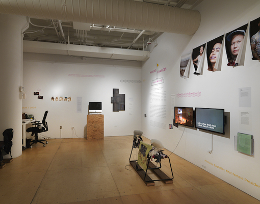 Making Chances is organized in three parts: 1/ art objects, ephemera, documentary photography, audio and video histories, and textual accounts of events in the histories of Chances Dances, Chicago’s LGBTIQ communities, and larger social change, all presented along a dynamic, non-linear timeline designed by artist Edie Fake, 2/ a video archive of work from Chances awardees and organizers accessible on multiple monitors along an upholstered banquette designed by artist Charlie Vinz, and 3/ a central performance platform designed by artists Elijah Burgher and Gordon Hall and planned to host a series of performances by Chances¬awarded performers, as well as other public events including a fashion show, poetry readings, and more.