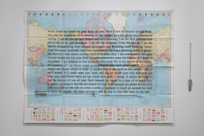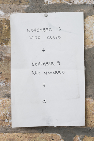 Equipped, created by Ray Navarro with assistance from Zoe Leonard, will be among the works exhibited. An image-text triptych in artist-designed frames, Equipped slyly mobilizes references to queer sex, AIDS medicine, and censored public speech. It was included in the 1990 PS 122 exhibition An Army of Lovers: Combatting AIDS, Homophobia, and Censorship, which opened on the day of Navarro’s death. The elements of a large collage installation by David Wojnarowicz, also shown in the PS 122 exhibit before being dispersed into different collections, will be brought together for display at Iceberg for the first time in 25 years.
