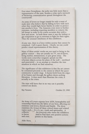 Iceberg’s exhibition will include artworks and a rotating display of documents, ephemera and protest signage from this collective of artists practicing at the intersection of the HIV / AIDS crisis and the Culture Wars of the Bush era. A workstation in the gallery will be used in cataloging and digitizing the archive during the run of the show.